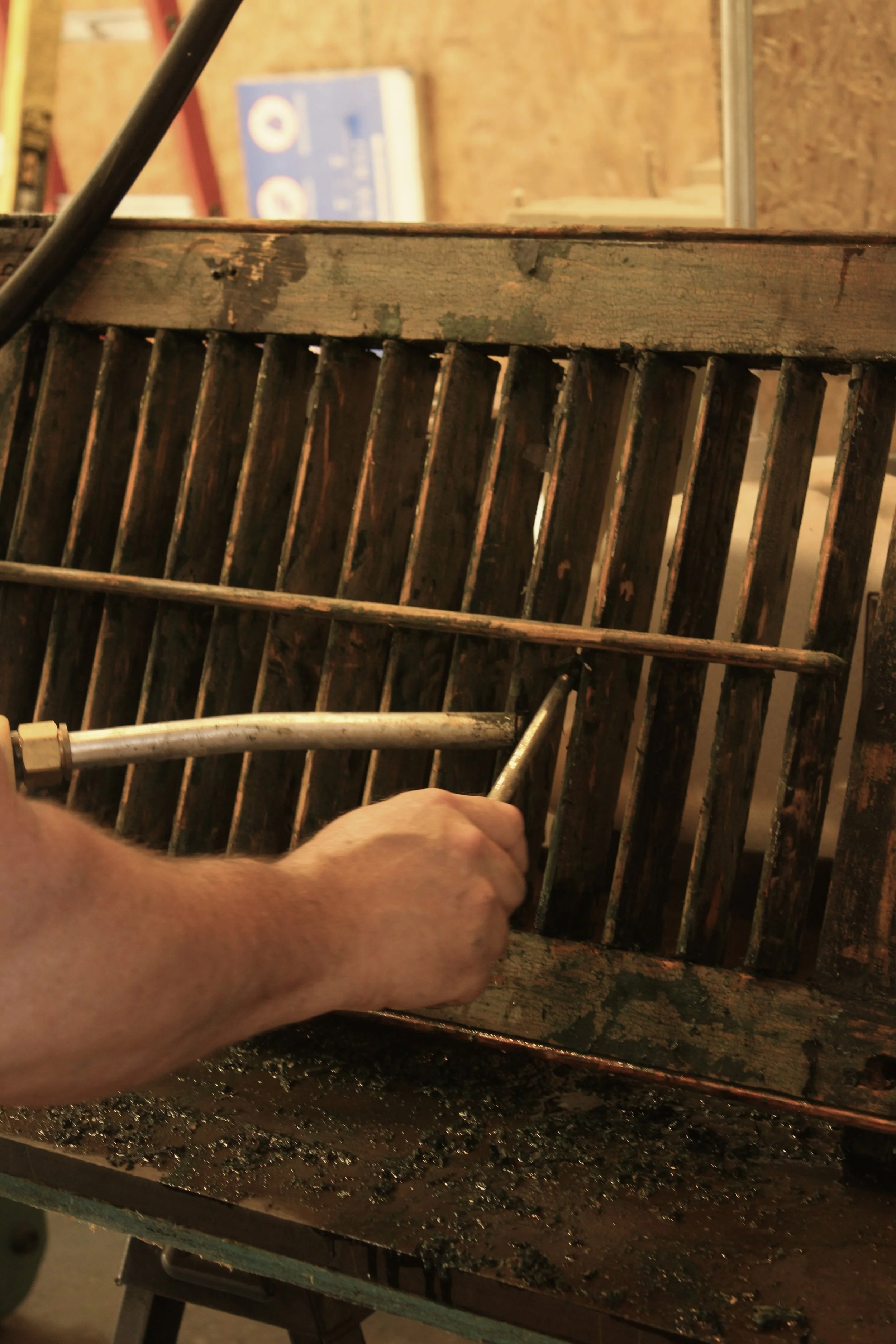 Original wood windows were carefully restored using linseed oil treatments and fitted with durable bronze chain systems for operation. Existing hardware was repaired and conserved to maintain authenticity. To enhance energy efficiency while respecting the building’s historic character, we fabricated and installed custom, period-appropriate storm windows designed to seamlessly match the original architecture.